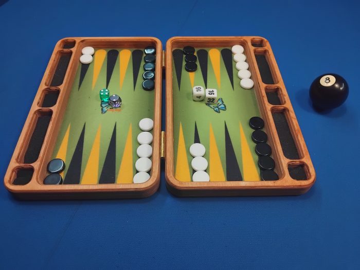 Note** The Table top versions are a flat non-hinged model. If clubs are interested in buying more than 5 at a time with the cheaper checkers and cups, discounts would be available. The Table top version is now made with only one side as checker / cube tray.